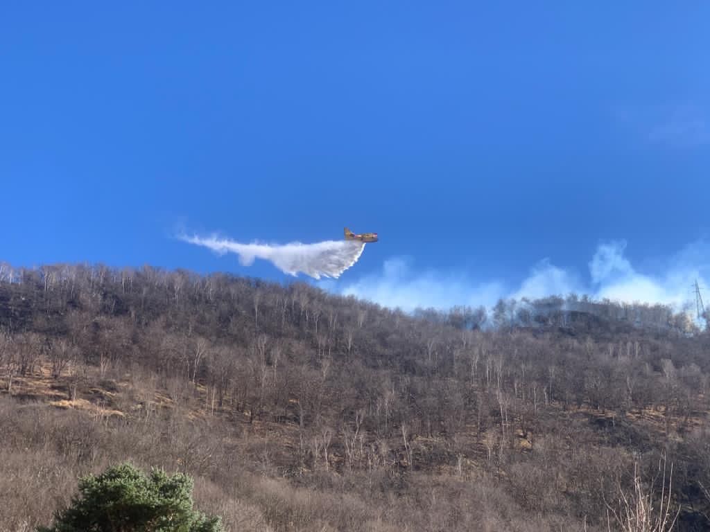 E' intervenuto anche un canadair per spegnere l'incendio che è divampato nuovamente sulle alture di Ornavasso. Sul posto stanno operando da questa mattina anche i Vigili del fuoco e i volontari dell’Aib, anche se non mancano le difficoltà per raggiungere la zona dove si sta sviluppando l'incendio alimentato dal forte vento.
