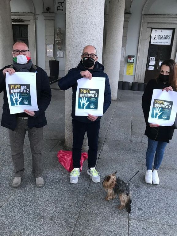 Flash mob sotto i portici del Municipio di Omegna per Fratelli d’Italia Omegna Cusio. In occasione della Festa del papà di venerdì 19 marzo hanno ribadito la loro contrarietà contrarietà alla definizione di genitore 1 o 2, in sostituzione di quella di padre e madre.