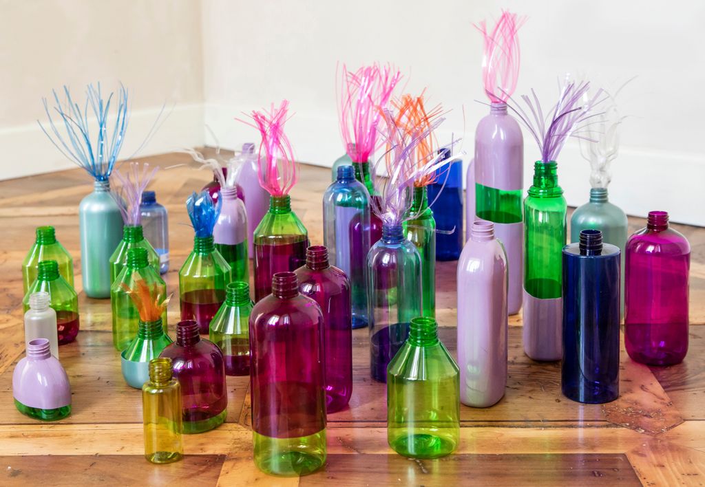 Dove ci aspetteremmo materiali preziosi troviamo, invece, oggetti di scarto, packaging, elementi di riciclo strappati dai cestini della raccolta differenziata della plastica.