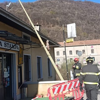 Vento a Omegna, cade un palo della luce FOTO