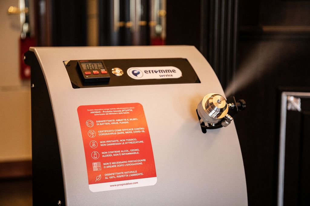 Inoltre, per la santificazione degli ambienti, è stato acquistato il nebulizzatore SanCase, il quale crea gocce con un diametro inferiore a 10 micron che saturano l’ambiente disinfettandolo senza bagnare o danneggiare le superfici, depositandosi anche negli punti più nascosti dell’ambiente trattato.