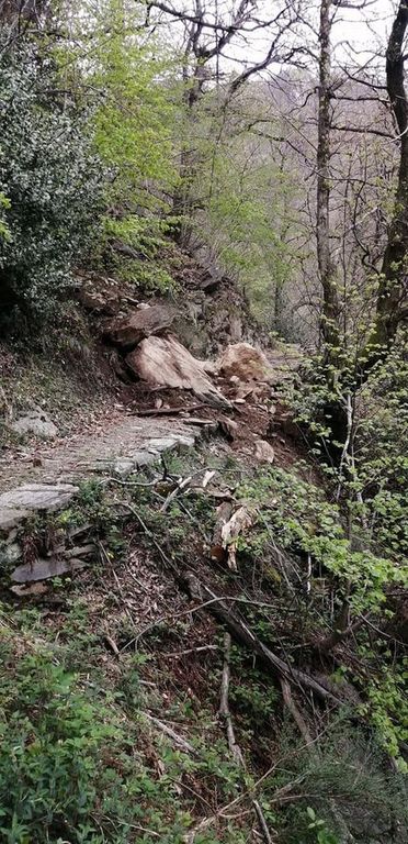 A solo una decina di giorni dalla conclusione degli interventi di sistemazione del sentiero seriamente danneggiato in più punti in seguito all’alluvione del 2 e 3 ottobre 2020, ora si registra un nuovo smottamento, causato dalle piogge di sabato scorso.