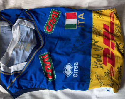 Ci sono la racchetta del fenomeno azzurro Sinner, il tutino da gara dello slalomista Vinatzer, la maglia della Juve di Federico Chiesa. E, ancora, la maglia della Igor di Cristina Chirichella e quella della nazionale di volley firmata da tutte le giocatrici. Presto ci saranno anche il casco da gara di Checco Bagnaia, protagonista in Motogp e la canotta dei Brooklyn Nets di Mike James.