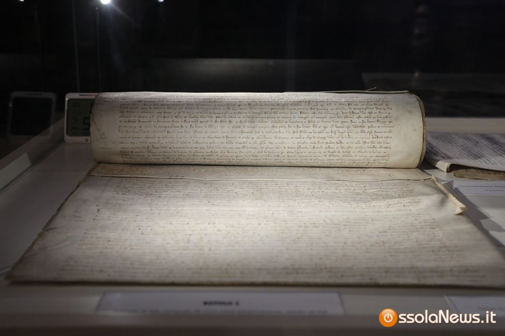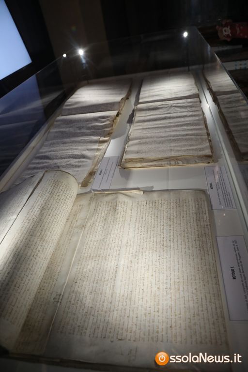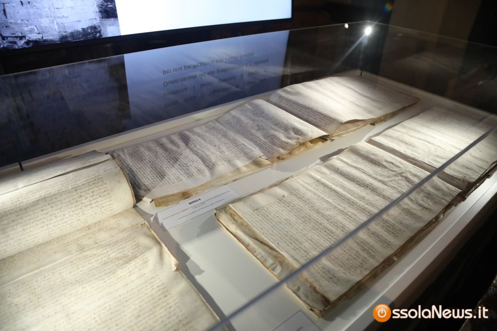 Si tratta di oltre 24 metri di documentazione; i rotoli sono esposti in una teca di vetro le pergamene e furono attentamente studiate anche da don Tullio Bertamini che dedicò alle mura diverse pagine sulla rivista Oscellana. Sull'esposizione è stato girato un video che viene trasmesso negli orari di visita ed stato scritto un volumetto dallo storico Enrico Rizzi ed edito dalla libreria Grossi, in distribuzione gratuitamente. In copertina un disegno acquarellato del '600 che rappresenta le mura di Domo. La mostra resterà aperta fino al 20 novembre. Da lunedì a Venerdì dalle 10 alle 17 , sabato dalle 10 alle 15.30 e domenica dalle 12.30 alle 17.30 . L'esposizione resterà chiusa durante le celebrazioni religiose quali funerali, rosari, battesimi, matrimoni o altre liturgie.