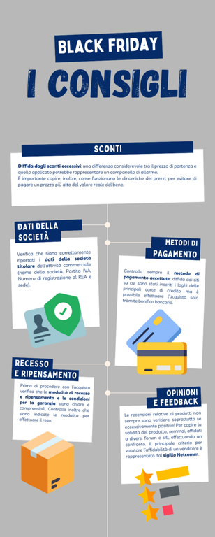 Il Black Friday, tuttavia, non è solo occasione di acquisti a prezzo scontato e caccia agli affari, ma può nascondere numerose insidie. Sono gli acquisti online a riservare il maggior numero di rischi e per questo è utile tenere a mente, prima e al momento dell’acquisto, alcune accortezze utili ad evitare truffe e inconvenienti.