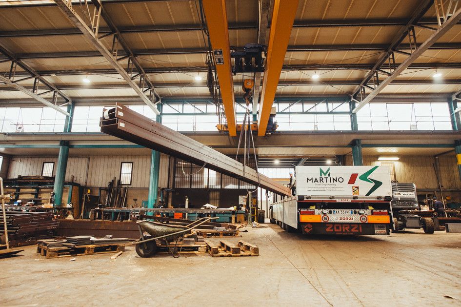 L’azienda oggi si distribuisce su una superficie di oltre 7.000 mq, di cui 4.500 mq sono destinati ai locali produttivi, 600 mq ca. al magazzino, 2.000 mq a piazzali per deposito merci; il reparto produttivo risulta essere completa in tutte le sue fasi sia per la carpenteria leggera che per la carpenteria pesante, a partire dalla lavorazione delle travi e lamiere con impianti di ultima generazione (LINEA AUTOMATICA DI FORATURA E TAGLIO A CNC FICEP ORIENT 1001 ORB, IMPIANTO DI TAGLIO TERMICO PLASMA 3D CON SISTEMA DI FORATURA E FILETTATURA ISO40 12 UTENSILI PROMOTEC KTEVO 2500X3000 MM, CESOIE 4 e 6 MT. GASPARINI, PRESSE PIEGATRICI NOVASTILMEC e FARINA, CALANDRA MG, CURVA PROFILI MG, PUNZONATRICI FICEP, SEGATRICI FMB, SCANTONATRICE FIM, TORNIO), all’assiematura e saldatura con impianti di ultima generazione. Il reparto produttivo è servito da 12 carroponti con portata da 5 a 20 tonnellate, muletti da 25 a 50 q.li, completa il ciclo produttivo un reparto dedicato esclusivamente alla verniciatura. Nella palazzina uffici della Martino s.r.l., trovano spazio un ufficio logistica, qualità/sicurezza/ambiente, acquisti, personale, amministrazione/contabilità e l’ufficio tecnico. L’azienda oggi tra personale operativo e di concetto, conta 35 dipendenti.