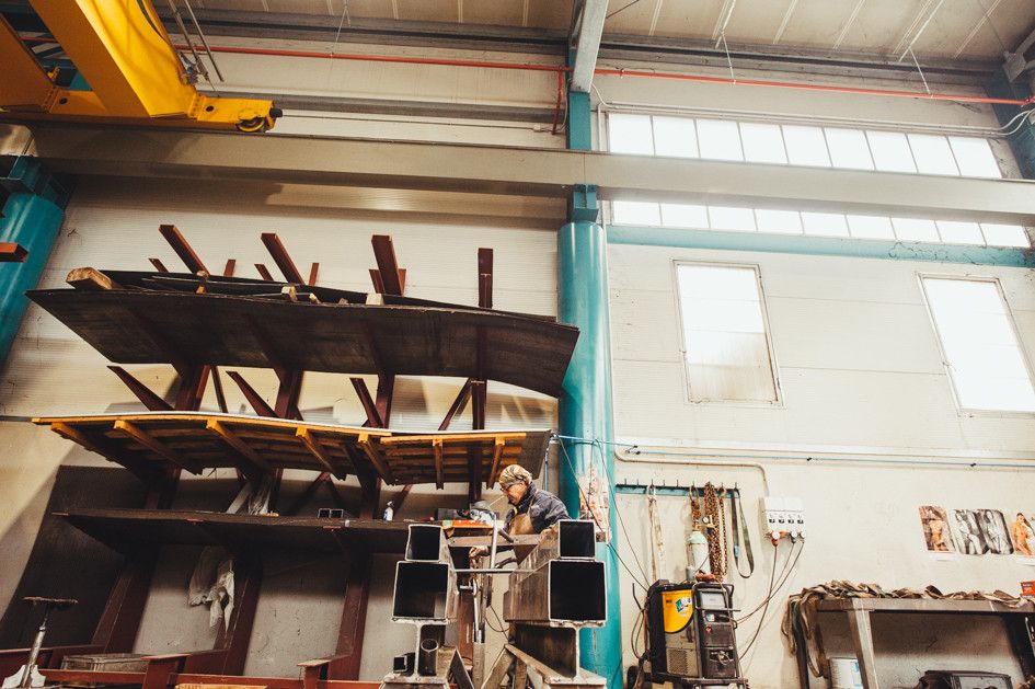 INGEGNERIA: l’ufficio tecnico è composto da professionisti qualificati e altamente specializzati, utilizza il processo di progettazione basata sulla metodologia BIM (building information modelling) per la parte iniziale di definizione delle geometrie e sfocia, nella progettazione CAM (computer aided manufacturing) partendo dall’acquisizione della nuvola di punti e la parametrizzazione digitale degli oggetti di partenza, sviluppo delle sezioni e adattamento alla richiesta del cliente per poi passare, una volta definito, alla progettazione costruttiva tramite programmi di modellazione in grado di estrarre normalini, distinte, costruttivi di officina, disegni di montaggio in 3D. Progettazione esecutiva e calcolo strutturale con software di ultima generazione con rilascio della denuncia delle opere strutturali; l’assistenza da parte dei nostri topografi e tecnici di cantiere con rilievi, tracciamenti e verifica delle quote di posa delle strutture. Completa questa parte la ricerca e sviluppo, basata principalmente su 3 obiettivi, la definizione di una metodologia che permetta ai montatori la visione del progetto prima della propria realizzazione sfruttando la realtà virtuale, l'analisi strutturale e la verifica delle saldature in sezioni di elevato spessore e la ricerca della forma ideale nella progettazione di ponti reticolari a grandi luci. Questo è possibile dato la collaborazione continua con le università e i centri di ricerca, tramite sviluppo di tesi e tirocini aziendali.