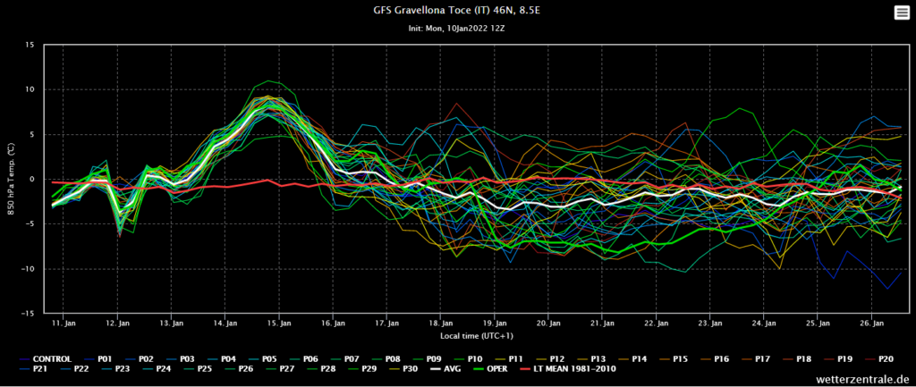 Luca Sergio di MeteoVcoLive nella sua ultima previsione ci ha fatto conoscere “gli spaghi” previsionali spiegando che “Vista la forbice molto aperta degli spaghi è necessario attendere qualche prossimo aggiornamento”.