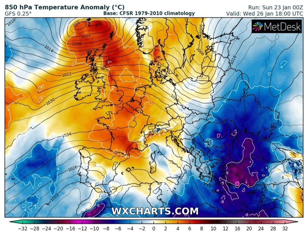 Luca Sergio di MeteoLive Vco analizzando il quadro europeo trae queste conclusioni: «Non si sblocca il pattern (modello) a scala Europeo, l’alta pressione resta dominante. Maltempo al centro sud ma le Alpi resteranno ancora a secco. Negli ultimi 10 anni il mese di gennaio ha avuto una serie di annate, ben 6, con un mese particolarmente siccitoso. Il 2013, il 2016 e 2017, il 2019 e il 2020 e probabilmente questo 2022, tutte annate con precipitazioni comprese tra 3.3 mm del 2020 e 28 mm del 2013. In questo 2022 siamo a 5.3 mm, dati che fanno riferimento alla centralina di Gravellona Toce. La media di gennaio è scesa a 75 mm. L’Assenza di precipitazioni in questa località naturalmente coinvolge anche le Alpi Pennine e Lepontine. La situazione rimane di blocco alto pressorio centrato sull’Europa centro occidentale. Le Alpi, deficitarie di precipitazioni nevose, rimarranno ancora a lungo in balia di questo inverosimile inverno».