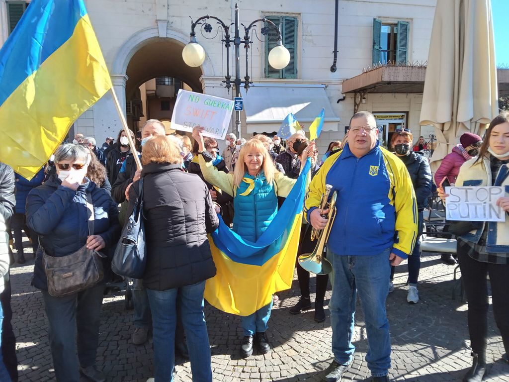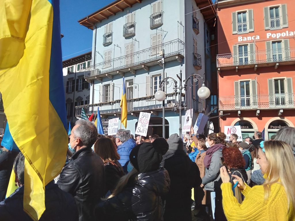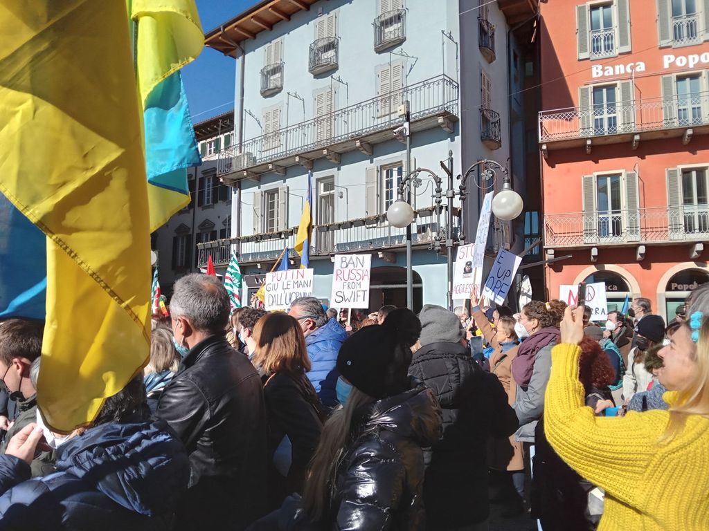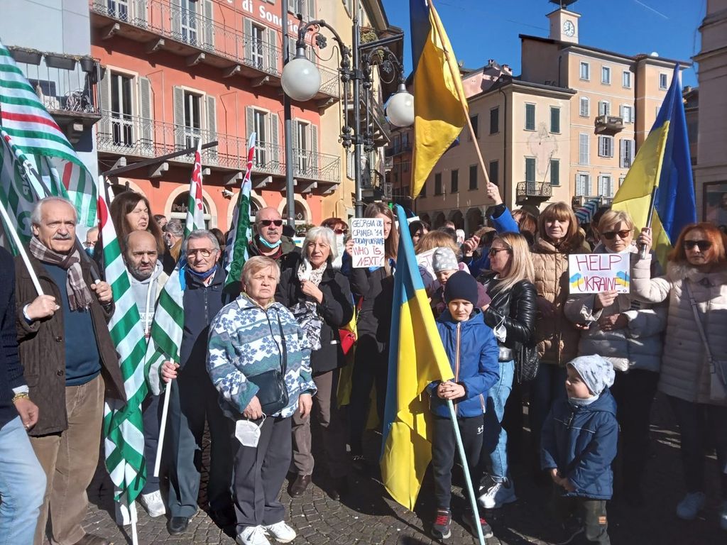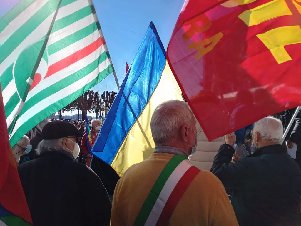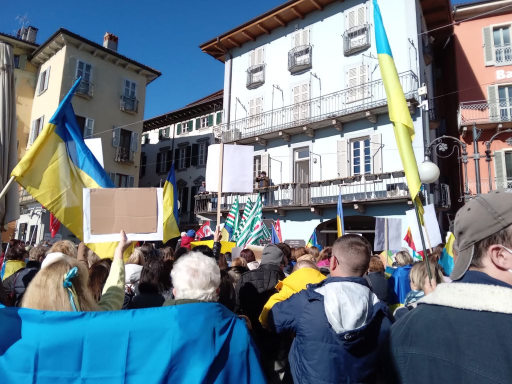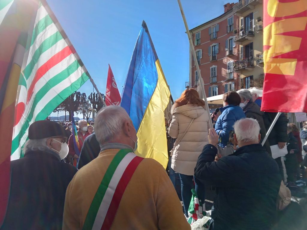 Quasi assenti le bandiere di partito, ad eccezione di quella del Partito comunista. Presenti in massa esponenti ed amministratori del Pd. Molte le bandiere della Pace. Sono intervenuti due badanti ucraine, Stefano Montani (Comitato per la Pace Vco), Franco Chiodi, neo presidente di Anpi Vco.