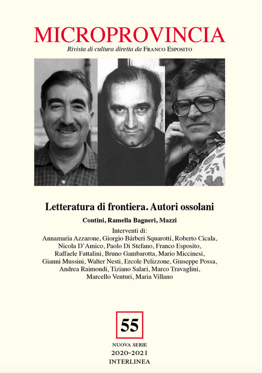 Letteratura di frontiera. Autori ossolani, Contini, Ramella Bagneri, Mazzi edito da Interlinea, Novara 2021, pp. 148, euro 25, “Microprovincia” numero 55.