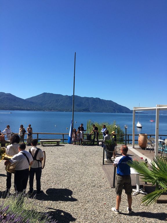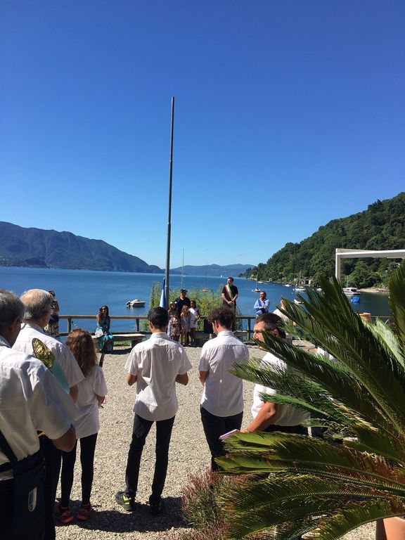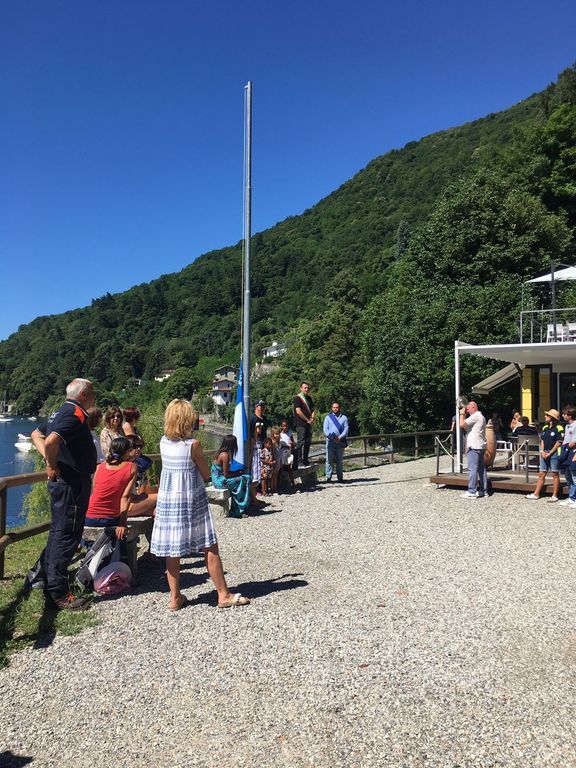 Presenti all’alzabandiera le forze dell’ordine operative a Cannobio: Carabinieri e Guardia di finanza. Proprio la Guardia di finanza ha voluto rendere omaggio al ritorno della Bandiera Blu con un volo dimostrativo di un suo elicottero.