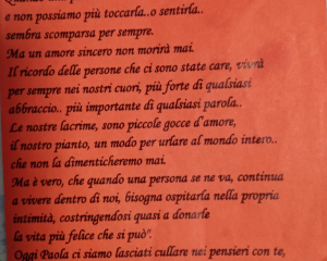 "L'idea di questo viaggio, di più 2000 km -racconta Stefano- mi balenava in testa da anni. Quando tutti gli incastri sono andati a posto, sono partito ed è stata un'esperienza unica, che porterò sempre con me. Ho attraversato Italia, Francia e Spagna, con la fatica ma con una spinta particolare nelle gambe, nella testa e nel cuore. Un'esperienza nella quale è come se avessi camminato insieme a mia figlia. Per dei genitori, perdere un figlio è il dolore più grande che possa esserci: io ho sempre cercato di trasformare il dolore in energia positiva, perchè so che Paola avrebbe voluto così. Sono sempre stato convinto che il nostro non sia stato un addio, ma un arrivederci: mi piace pensare che prima o poi la potrà riabbracciare. E, nel suo ricordo, abbiamo fin dal 2011 organizzato una camminata, il giorno del suo compleanno, il 1 maggio, per ricordarla non con tristezza, ma con gioia” conclude papà Stefano.