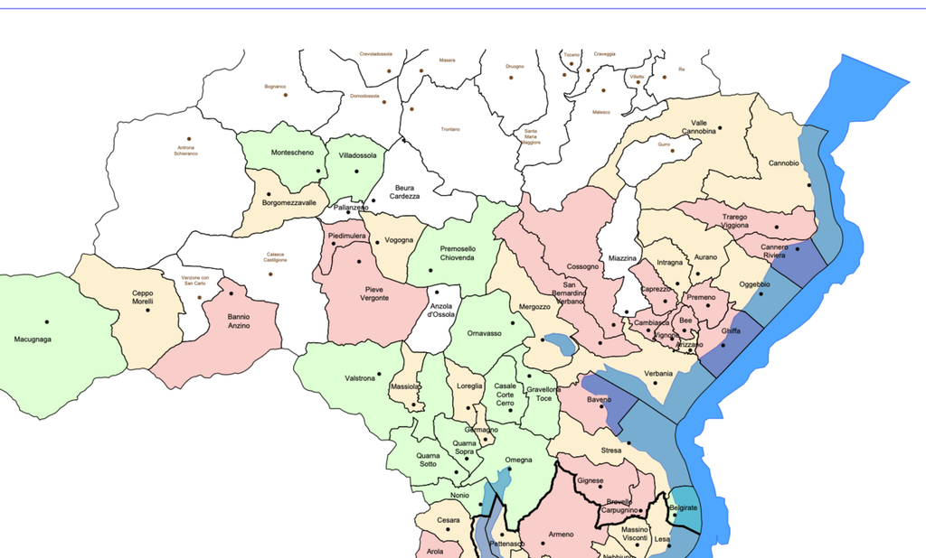 In ‘Fascia 2’, con il pericolo di finire presto in fascia 1, troviamo Belgirate, Casale Corte Cerro, Gravellona Toce, Macugnaga, Montescheno, Nonio, Omegna, Ornavasso, Premosello Chiovenda, Quarna Sopra, Quarna Sotto, Valstrona e Villadossola.