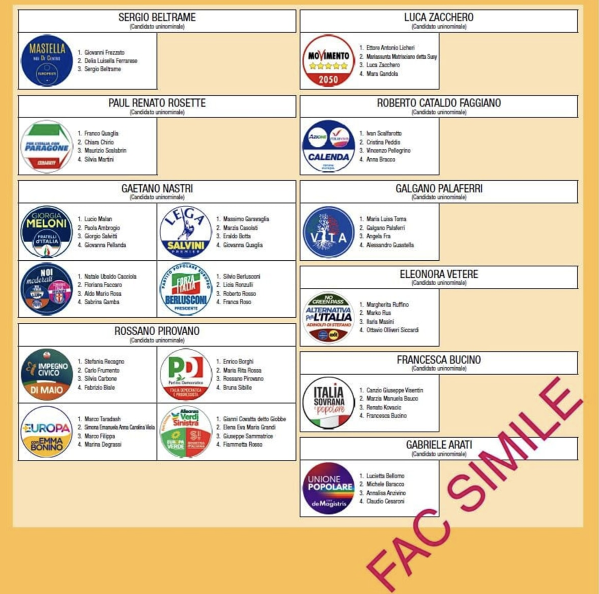 Non sarà valido il cosiddetto voto disgiunto, quindi non sarà possibile mettere una X su un candidato e un’altra su un partito diverso da quel candidato. Non si potranno inoltre esprimere preferenze.