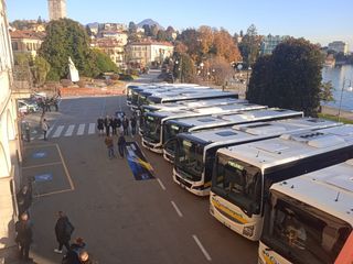 Presentati, dal presidente Roberto Tomatis, 8 dei 12 nuovi bus adibiti al trasporto pubblico di linea. Lunedì 28 entreranno in servizio sulle tratte urbane ed extraurbane coperte da Vco Trasporti. Sono bus Man, di tipologia Euro 6, acquistati anche grazie alla copertura del 50% da parte della Regione Piemonte, 1,5 milioni su 3 di costo complessivo. Rientrano nella politica di transizione ecologica di sostituzione di mezzi inquinanti con altri a più basso impatto ambientale. Con i 12 nuovi bus, il parco mezzi di Vco Trasporti passa a 55 bus.