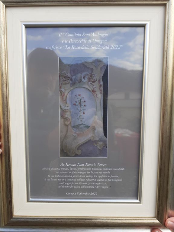La Rosa della Solidarietà, uno dei riconoscimenti più significativi per la comunità omegnese, è stata assegnata (giustamente ci permettiamo di aggiungere) a don Renato Sacco. La consegna è avvenuta nel giorno dell'Immacolata, nella chiesa parrocchiale. A scegliere don Renato il Comitato Sant'Ambrogio e la Parrocchia di Omegna.