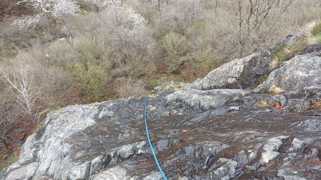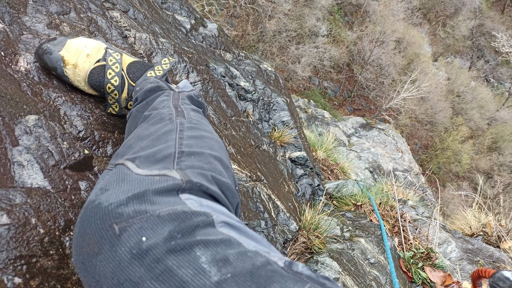 “Nella parte inferiore -conclude il giovane alpinista- ho trovato placche ben poco proteggibili, difatti le ho passate senza. Invece nel diedro e nelle placche superiori sono riuscito a proteggermi con protezioni veloci e due chiodi. Ho utilizzato una corda intera da 60 metri, tre Friend e 4 chiodi. Non ho abbandonato chiodi in parete, preferisco una montagna pulita da affrontare in stile alpino: ovvero una corda e tutto il materiale utilizzato che viene poi recuperato. La via si trova esattamente sopra ad Albo e dalla cima si ha un ampia vista sull'Ossola, sul Verbano, il lago Maggiore e gran parte della Val Grande”.
