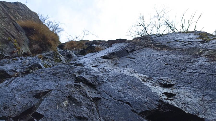 La salita è del 22 aprile, il racconto è quello del giovane alpinista. “Sono partito a piedi dalla frazione di Albo, sono salito vicino alle vecchie cave del duomo, per poi prendere la vecchia traccia di sentiero che porta all' alpe corte Lorenzo. Ad un certo punto lungo il sentiero si notano sopra un centinaio di metri le pareti verticali del Carbunisch, a quel punto sono salito fino alle placche di roccia di colore nero. Una volta alla base, mi sono reso conto che erano ancora parecchio bagnate, perché nei giorni precedenti aveva piovuto, ma ho deciso comunque di provare la salita e ho affrontato i primi 80 metri con estrema delicatezza su placche bagnate di quinto grado. Ho fatto sosta e riposato su un bel terrazzo e ho poi deciso di continuare la scalata, stando leggermente a destra rispetto al filo di cresta, e una volta percorsi altri centro metri mi sono ritrovato sotto ad un diedro molto bello e verticale di sesto grado”.