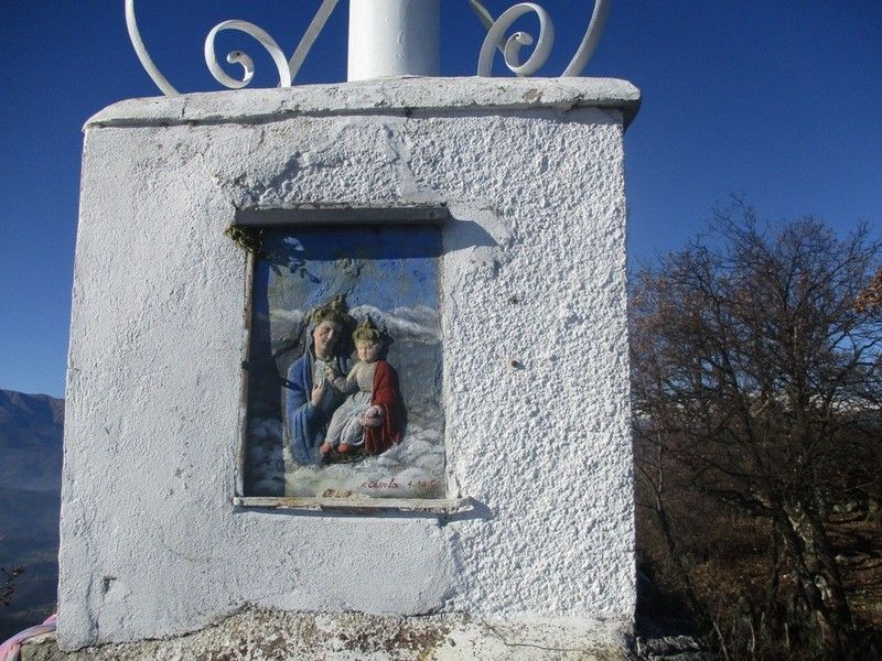 Si segue poi la traccia di sinistra che sale nel bosco fino alla sommità del Monte Pietraborga, sormontato da una croce con libro di vetta per le firme e bel riquadro della madonna (un’ora dal parcheggio, circa 250 m di dislivello).