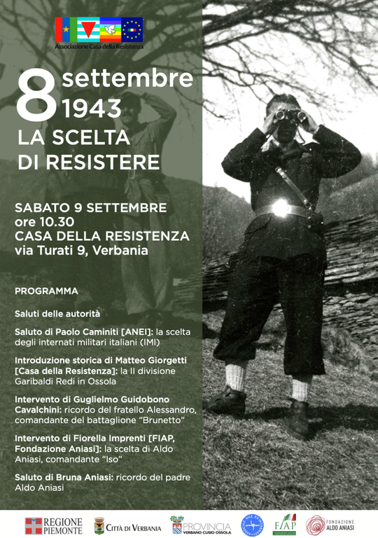 L’evento, a entrata libera e gratuita, è organizzato dall’Associazione Casa della Resistenza con il patrocinio della Regione Piemonte, della Provincia del Verbano Cusio Ossola, della Città di Verbania, dell’ANEI, della FIAP, della Fondazione Aldo Aniasi.