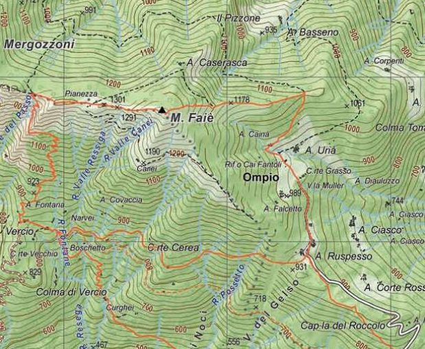 Cime sul percorso: Monte Faiè (mt. 1.352)
