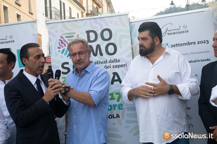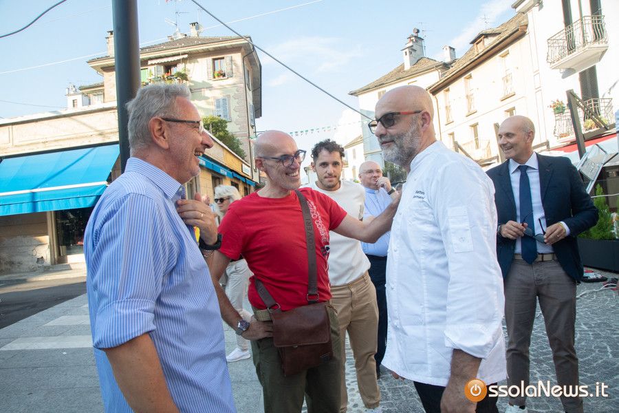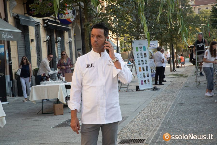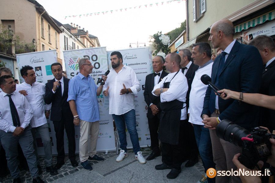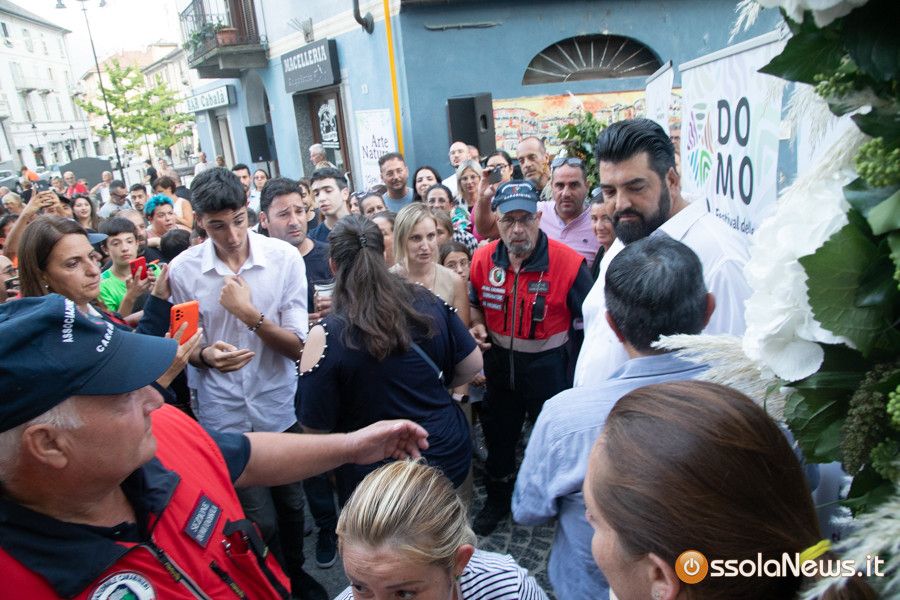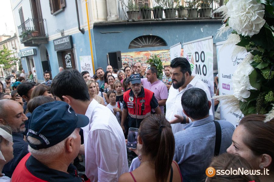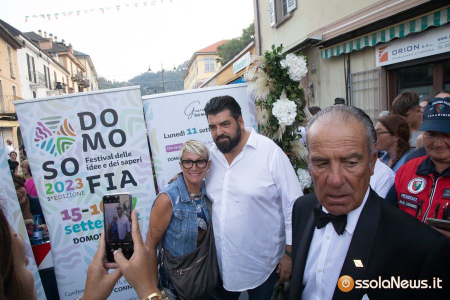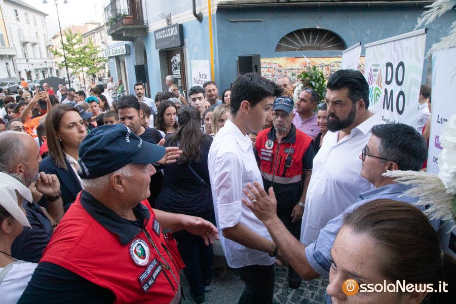 Tantissima gente all’apertura di Domosofia questa sera in centro a Domodossola. La cena stellata di via Rosmini ha avuto un ‘antipasto’ fatto di selfie per i tanti che hanno voluto vedere da vicino Antonino Cannavacciuolo, che ha preparato il piatto di apertura della cena benefica, organizzata per raccogliere fondi per il progetto degli appartamenti di edilizia sociale della Parrocchia.