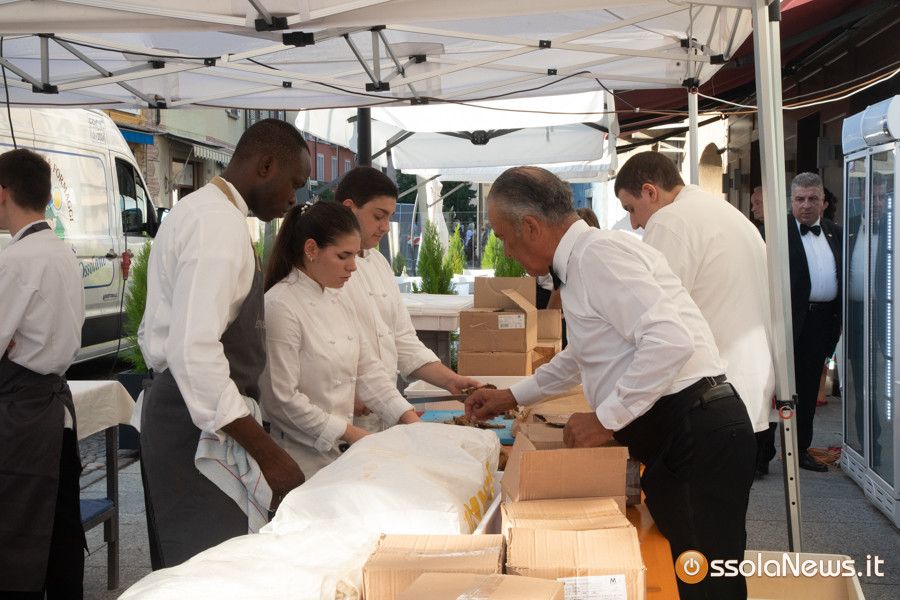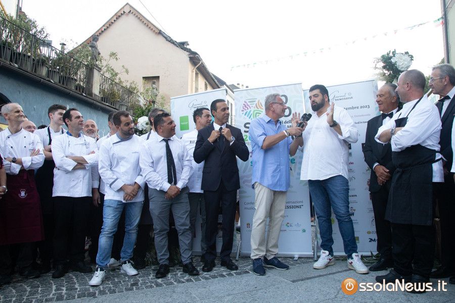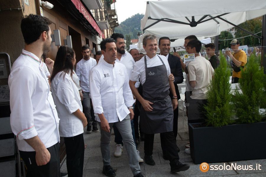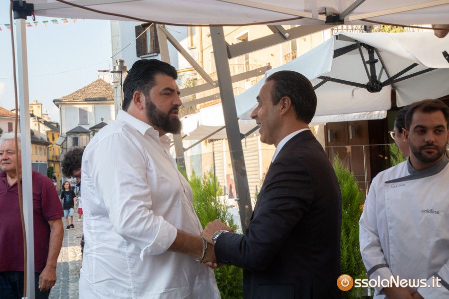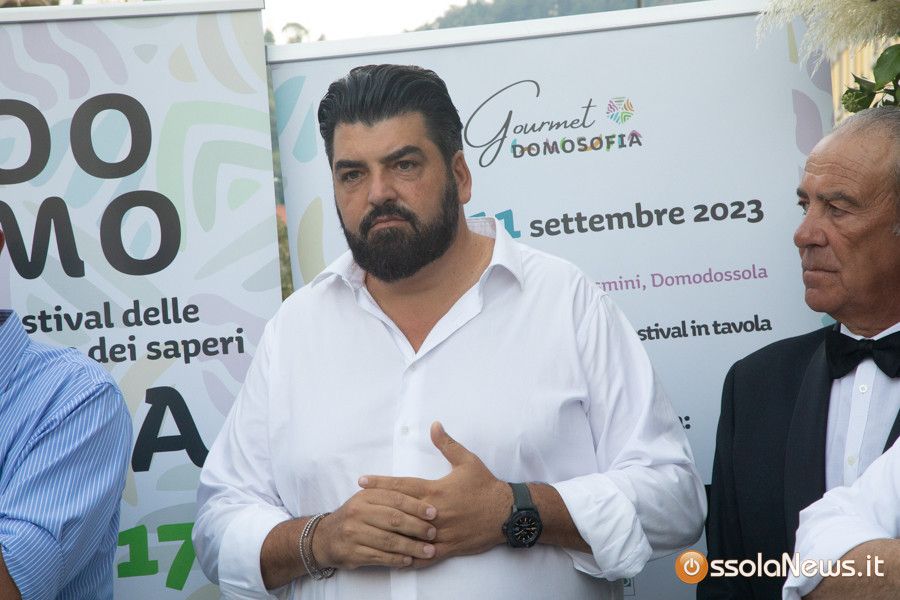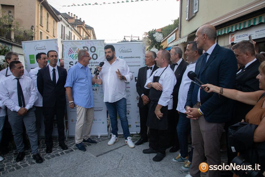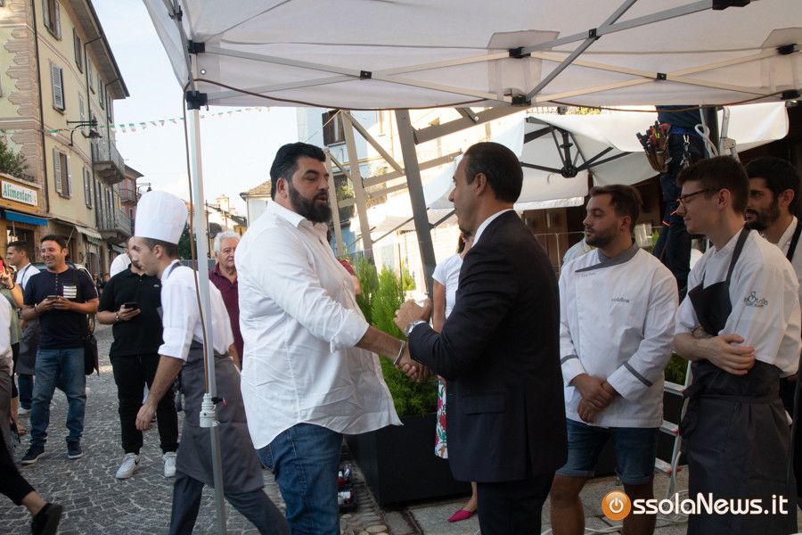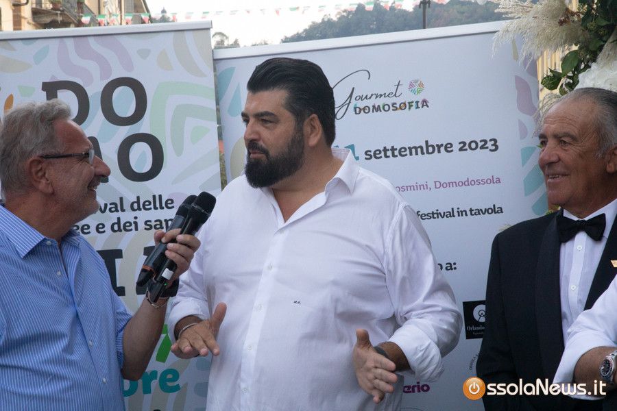 Tantissima gente all’apertura di Domosofia questa sera in centro a Domodossola. La cena stellata di via Rosmini ha avuto un ‘antipasto’ fatto di selfie per i tanti che hanno voluto vedere da vicino Antonino Cannavacciuolo, che ha preparato il piatto di apertura della cena benefica, organizzata per raccogliere fondi per il progetto degli appartamenti di edilizia sociale della Parrocchia.