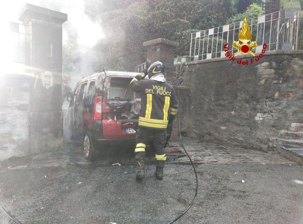 Intervento dei vigili del fuoco di Verbania intorno alle 18 per un incendio di un 'autovettura nei pressi di Villa Costanza a Miazzina. Un' utilitaria, dopo essere stata parcheggiata dal conducente, ha preso improvvisamente fuoco.