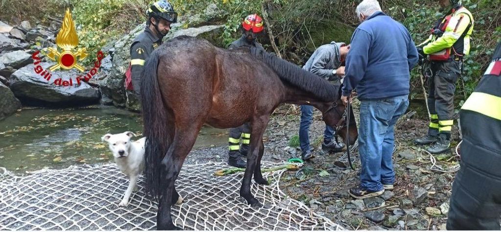 Intervento dei vigili del fuoco del comando di Verbania nel comune di Brovello Carpugnino per soccorrere un puledro di tre quintali in difficoltà. L’animale, probabilmente spaventato, si è allontanato da una tenuta agricola ed è accidentalmente caduto per circa 100 metri in una zona molto impervia nel fiume Agrisana. I soccorsi sono iniziati questa mattina attorno alle 10, quando i vigili del fuoco hanno raggiunto l’animale che appariva in buone condizioni, lo hanno liberato dalla fitta vegetazione che lo avvolgeva, e accompagnato in una zona sicura. È stato quindi richiesto l’intervento del nucleo elicotteri di Malpensa, data l’impervietà della zona e della fitta vegetazione. Si è reso anche necessario il taglio di alcune piante in modo da consentire all’elicottero Drago 153 il recupero dell’animale, previa la sedazione da parte del veterinario. Una volta portato nella tenuta agricola del proprietario e risvegliato le condizioni di salute dell'animale sono apparse buone.