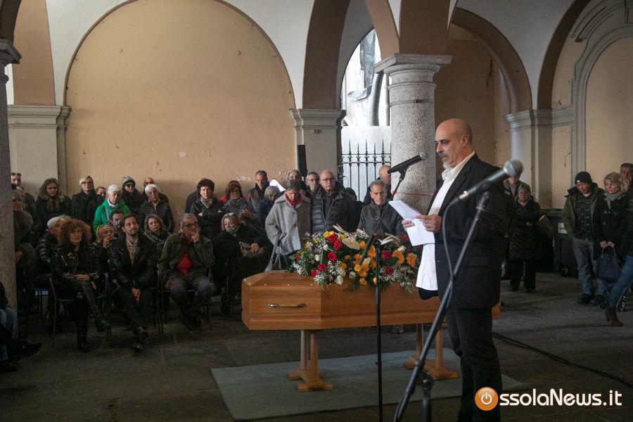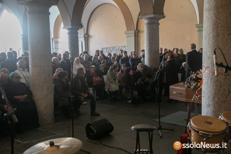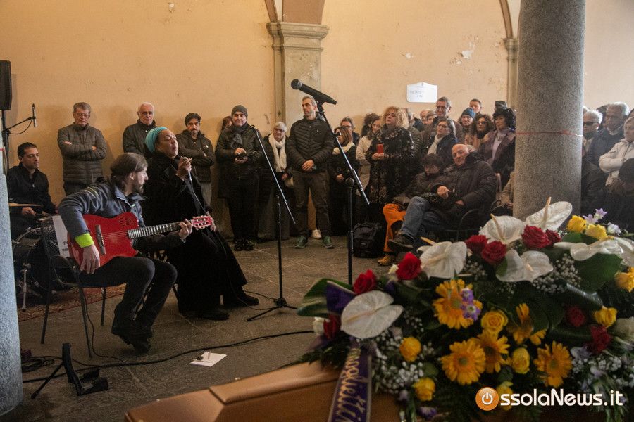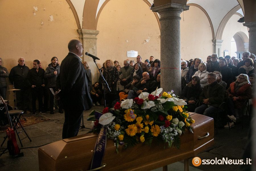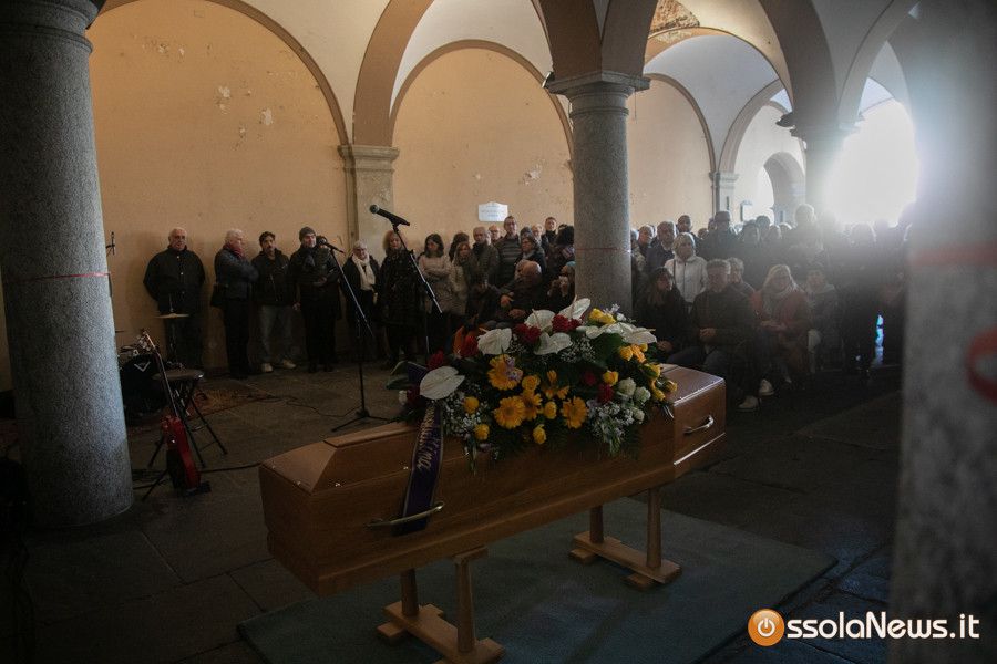 Una folla commossa ha preso parte al funerale con rito civile svoltosi nel pomeriggio sotto i portici di teatro Galletti. In prima fila la sua famiglia: composta dalla moglie Carmen Corradini e dai figli, Kim e Neve. Accanto a loro tanti musicisti con cui ha collaborato nel corso della sua lunga carriera musicale. C’era chi come la cantante svizzera Mary Birch lo ha conosciuto agli esordi della carriera, ma anche chi lo ha affiancato in età più matura: Michele Guaglio, Sara Piola solo per citare alcuni nomi. Il ricordo dell’artista e dell’uomo rivissuto nelle parole di Filippo Casaccia il giornalista di Rolling Stone arrivano qualche anno fa a Domodossola per un’intervista e poi diventato amico.
