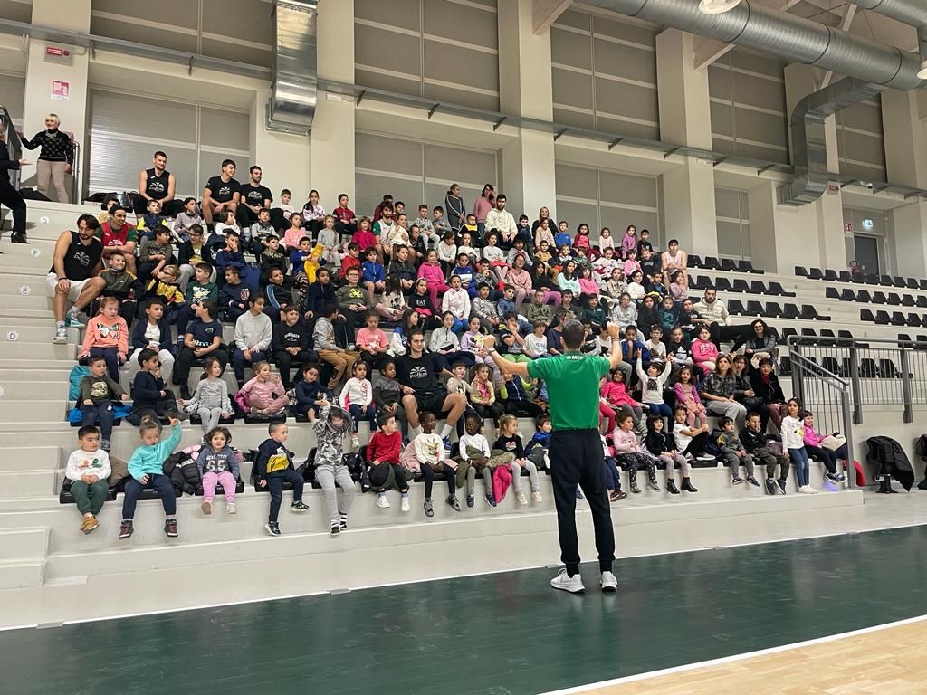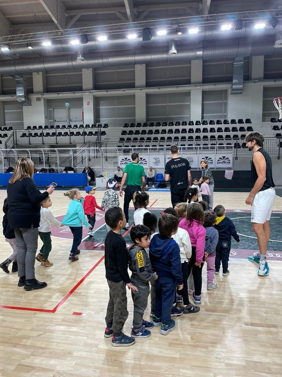 Una mattinata particolare per gli studenti delle scuole elementari e della materna di Gravellona. Circa 150 bambini hanno assistito all’allenamento della Paffoni. Per loro tiri, passaggi, l’ebbrezza di un canestro e tanto divertimento. Ai bambini ed alle loro maestre sono stati regalati i biglietti per la partita di sabato sera tra Paffoni e Salerno oltre ad un gadget targato Fulgor.