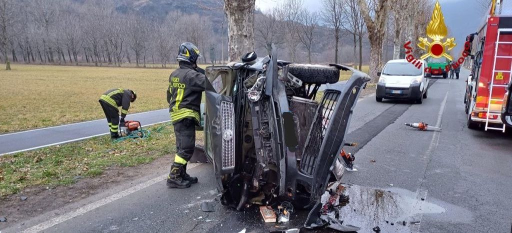 Una persona di 82 anni ha perso il controllo della sua auto, che si è ribaltata su di un fianco. I vigili del fuoco hanno estratto in sicurezza l'uomo che era incastrato nell'abitacolo, per affidarlo al personale sanitario.
