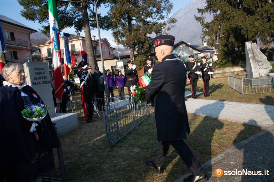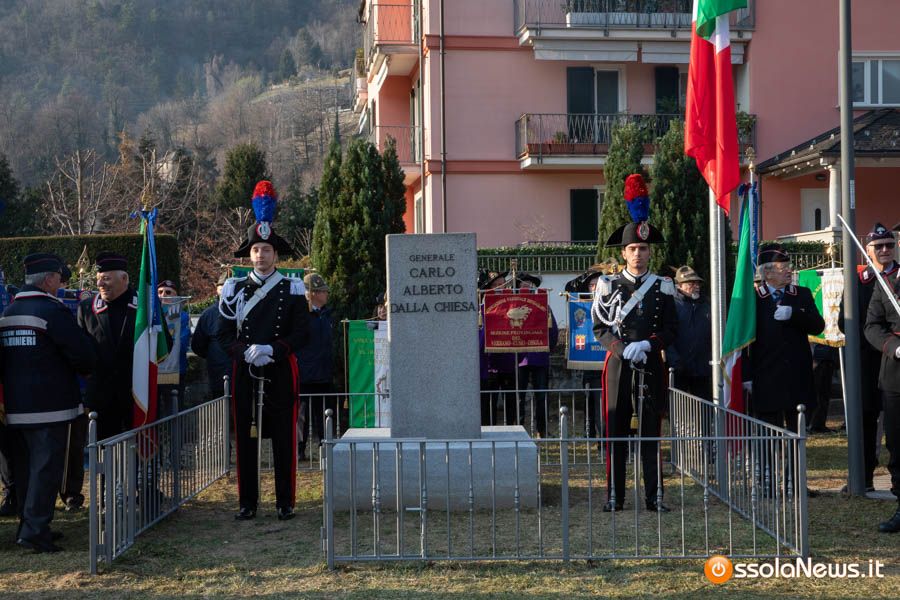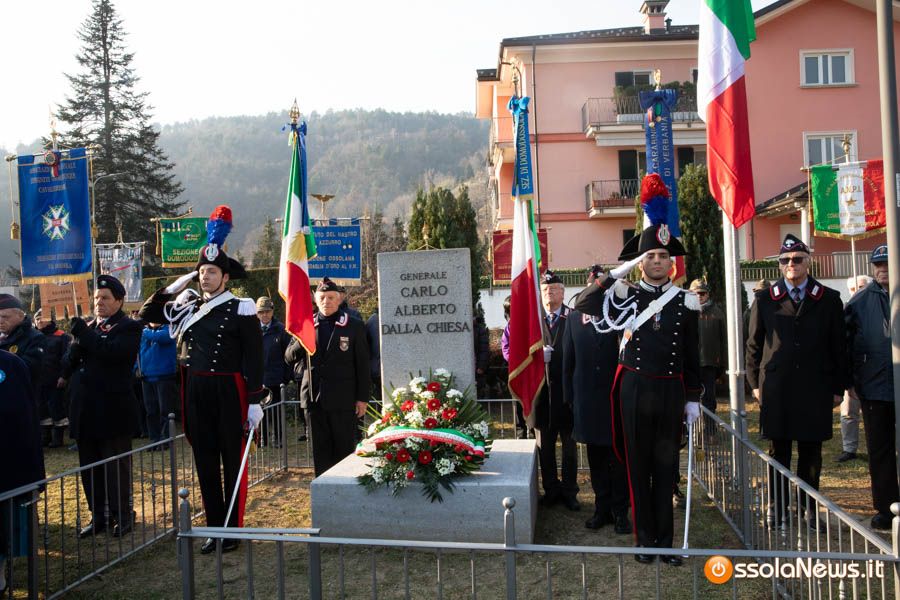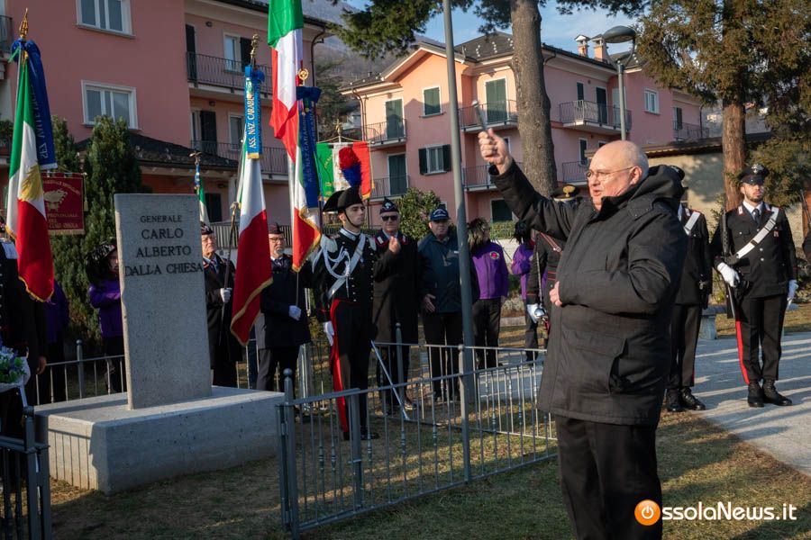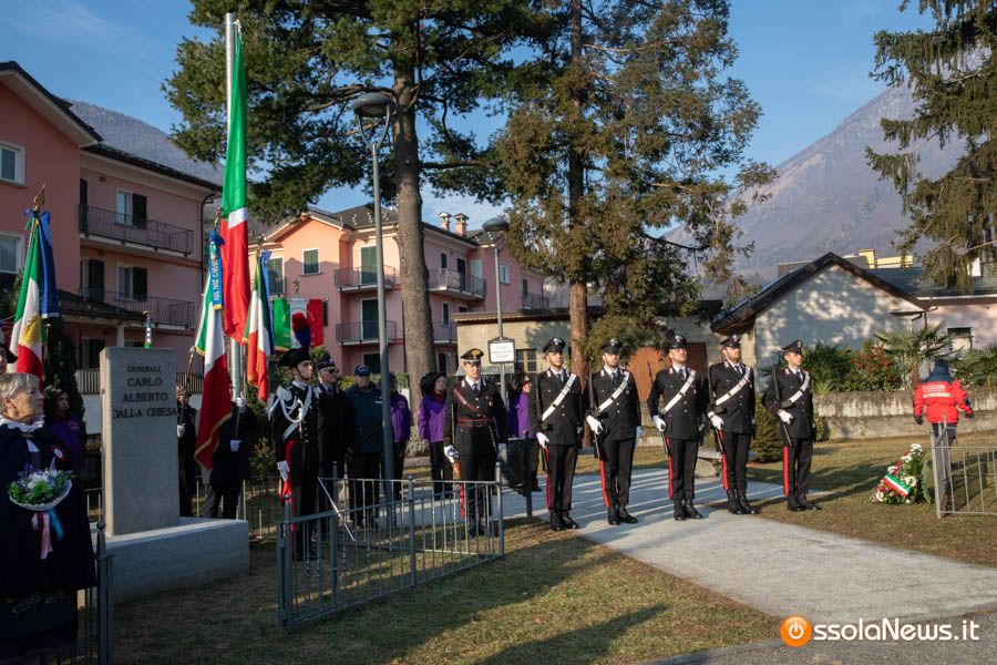 Tanta gente, molti studenti, componenti di associazioni e forze dell’ordine hanno partecipato stamattina alla cerimonia ufficiale che ha visto anche gli interventi del tenente colonnello Giovanni Della Sala del comando carabinieri di Verbania, del viceprefetto Giorgio Orru e del brigadiere in pensione Cataldo Santoro, che per un periodo fece da scorta al generale Dalla Chiesa.