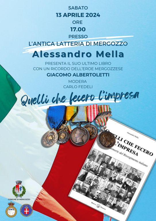 I Caffè Culturali Viù, una rassegna culturale che si tiene a Viù, in provincia di Torino, si sposta nel Vco per un appuntamento dedicato agli eroi del Risorgimento. Sabato 13 aprile, alle ore 17.00, l’Antica Latteria di Mergozzo ospita la presentazione di "Quelli che fecero l'impresa - Figure e memorie del Risorgimento italiano", volume di Alessandro Mella edito da Marvia Edizioni.