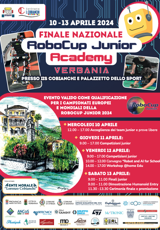 Dal 10 al 13 aprile l’IIS Cobianchi di Verbania ospita la finale nazionale delle competizioni di robotica educativa che fanno capo alla rete di scuole RoboCup Junior Academy, per l’edizione 2024.