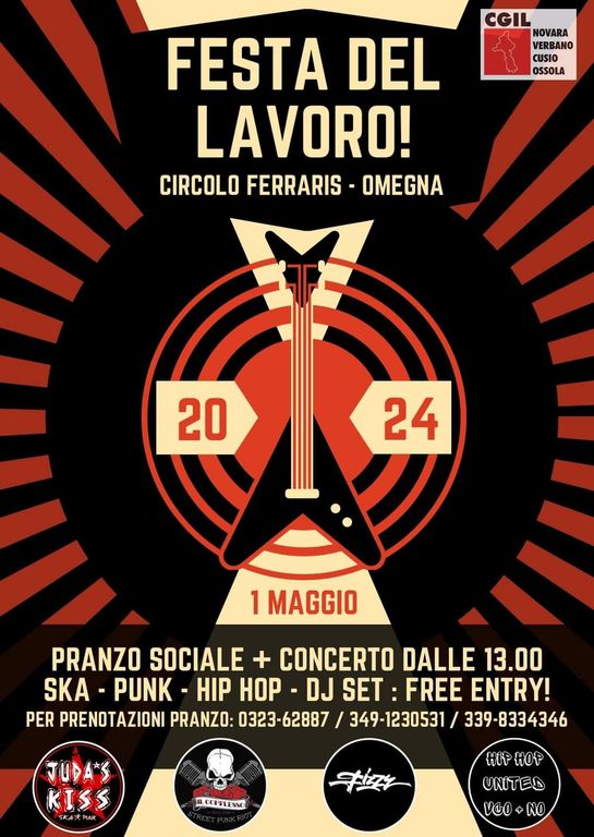 Si svolgerà a Omegna quest'anno la Festa dei lavoratori organizzata dalla CGIL di Novara e del Verbano Cusio Ossola. Una giornata che avrà luogo al Circolo Ferraris a partire dalle ore 13.00 con un pranzo sociale, per poi continuare con tanta musica e divertimento.
