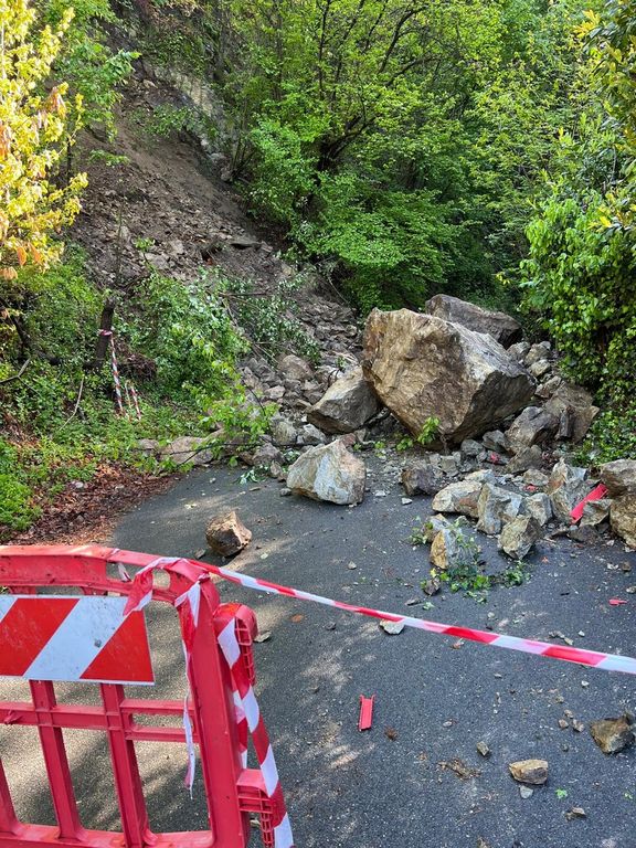 Il primo sopralluogo da parte di un geologo ha confermato la presenza, sul versante montano, di materiale instabile che potrebbe nuovamente franare sulla strada che da Agrano sale all'Alpe Selviana, chiusa da ieri pomeriggio. Il che significa che, ad inizio della prossima settimana, ci sarà il disgaggio di sassi e detriti, con successiva messa in sicurezza: la strada rimarrà ovviamente chiusa al traffico fino a che gli interventi non saranno ultimati. In questo week end rimarrà chiuso l'agriturismo Glicine, che è appena sopra il luogo della frana.
