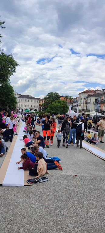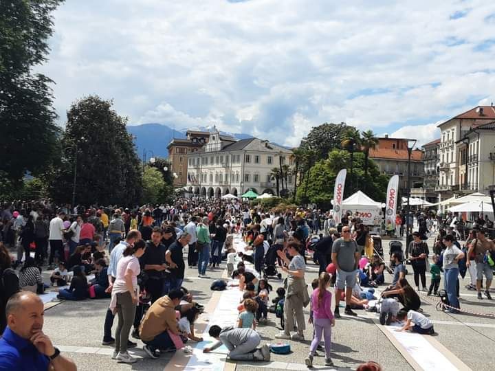 E’ stato interamente coperto dal maxi panino con la Nutella il disegno da 1256 metri tra il Mausoleo Cadorna, viale delle Magnolie e ritorno, della “Domenica da record”. Un evento al quale hanno lavorato per 3 mesi 26 associazioni, 38 le scuole che hanno aderito all’iniziativa, 1.350 i bambini delle scuole primarie del territorio che hanno realizzato il maxi panino, 2000 le fette di Nutella distribuite, 4500 le persone che hanno affollato piazza Garibaldi tra genitori, nonni dei bambini e curiosi.