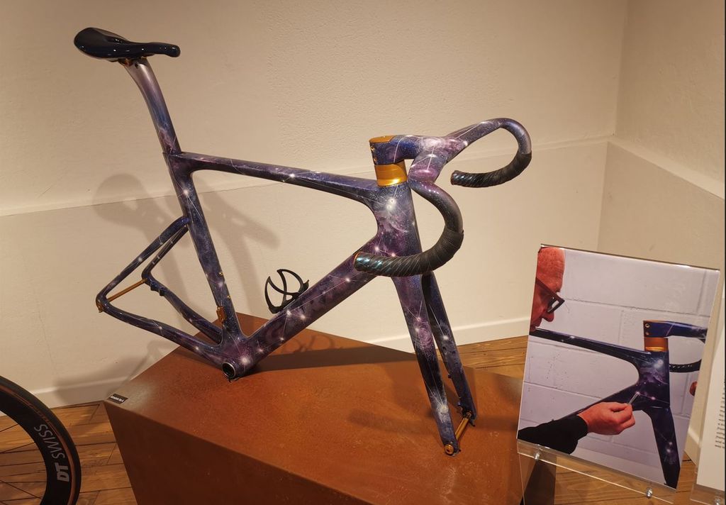 Arte, inventiva, tecnologia di avanguardia trovano espressione in dipinti, biciclette e caschi, lavori dunque di varia natura ma accomunati dal riferimento al mondo del ciclismo. Giuseppe Festino, Maestro dell'illustrazione, ha realizzato appositamente i ritratti fortemente evocativi dei grandi campioni collegati alle tappe iniziali del Tour (Coppi, Bartali, Pantani), affiancati a Filippo Ganna protagonista attuale a livello internazionale dello sport delle due ruote.