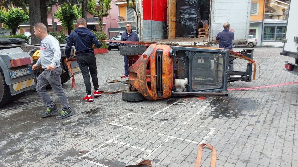 Incidente per fortuna senza conseguenze oggi nel primo pomeriggio ad Omegna in zona giardini. Un muletto impegnato nello smontaggio delle strutture del Festival della Pizza si è ribaltato. Nessun ferito ma legittima paura.
