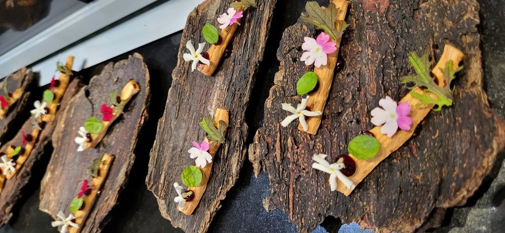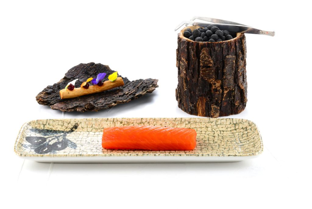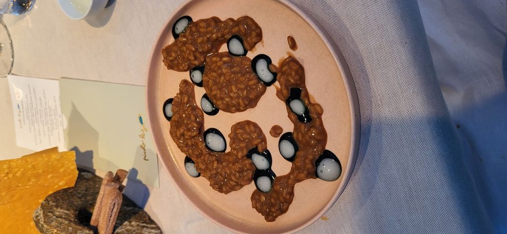 Nel menu è rappresentato non solo il cibo, ma anche i materiali: "Tutto ciò che abbiamo visto nella nostra passeggiata - prosegue il maestro - è stato trasformato nei piatti". Come i "sassi" di aceto balsamico.