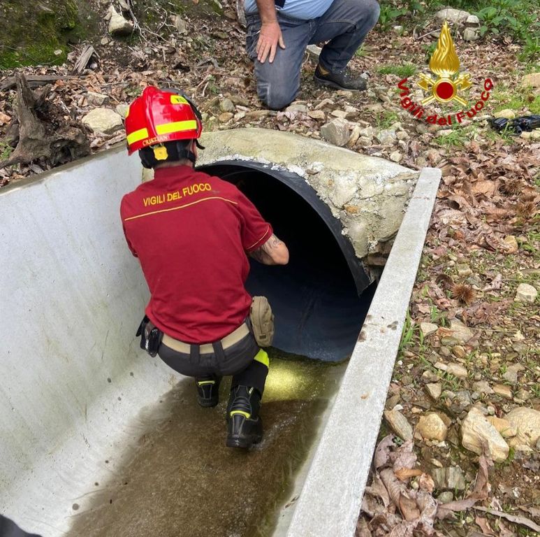 Alcuni passanti hanno segnalato la presenza dell'ungulato dentro un fosso di scolo dell'acqua fortunatamente in secca. I vigili del fuoco sono riusciti dapprima a liberarlo dal cunicolo del canale e poi a sollevarlo al piano campagna per lasciarlo libero di raggiungere la madre che nel frattempo lo richiamava.