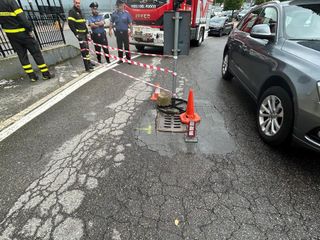 Rischia di collassare la strada che dal piazzale dell’ospedale sale verso via Novara, appena prima dell’entrata del punto di primo soccorso al Madonna del Popolo.