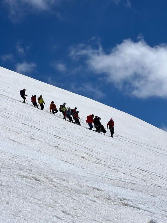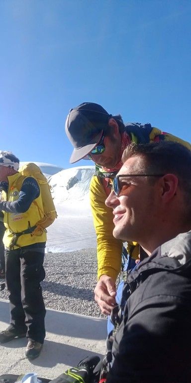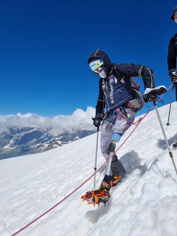 Daniele Boero, organizzatore: “La salita è andata piuttosto bene, abbiamo faticato meno del previsto e abbiamo raggiunto la vetta più velocemente di quanto previsto. La cima è stata caratterizzata da un vento forte e freddo, in particolare dalla metà della diagonale in cresta. Siamo arrivati alla cima tutti con le lacrime agli occhi ed eravamo emozionati. C’è stato un attimo di silenzio collettivo in contemplazione del panorama e dell’impresa compiuta. Raffaele, il trasportato, che solitamente non si esprime mai perché timido, era davvero molto contento. La giornata è andata molto bene, siamo molto orgogliosi di quello che è stato fatto e ringraziamo tutte le persone che ci hanno supportato e sono state vicine a questa impresa. Cervinia veramente riparte.”