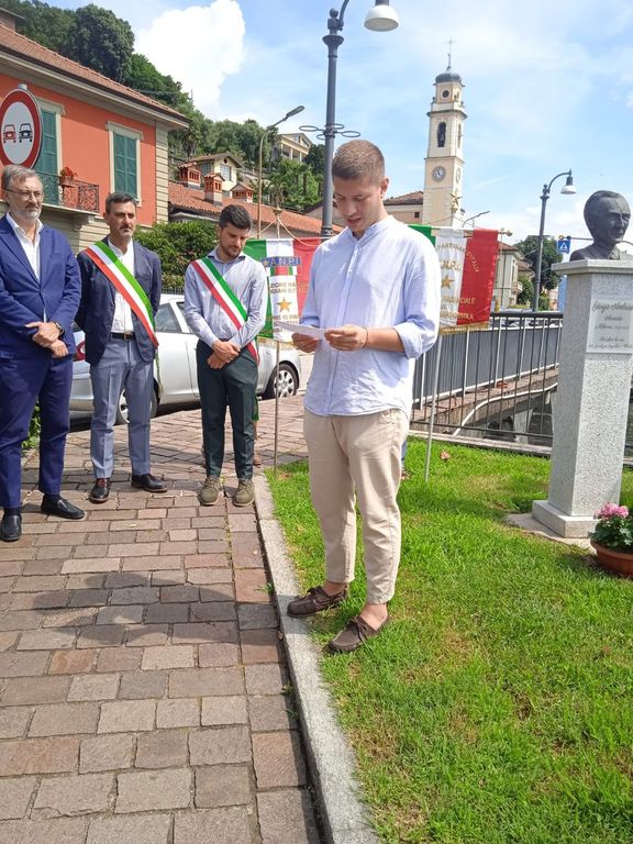 A commemorare il nonno è stato il nipote, Stefano Mattachini (figlio di Francesca), presente con la nonna Annalori: “Grazie, ricordare non è mai scontato. Oggi si chiude una settimana importante. Lunedì ci siamo trovati con le autorità a Milano per ricordare persone che hanno fatto il loro dovere con dedizione. Giovedì ci siamo ritrovati, sempre a Milano, nell’anniversario della morte. Oggi ci ritroviamo qui, su questo lungolago che la sindaca di allora (1996, ndr) Giovanna Bersi con lungimiranza volle intitolargli e davanti a questo monumento che ben lo rappresenta. Se devo ricordare il nonno con un libro, sembrerà strano, mi piace ricordarlo con “Alice nel paese delle meraviglie”, in particolare con “Alice degli specchi”. Di fronte alla sua immagine riflessa dallo specchio arriva una voce: è importante prendere appunti. È l’invito che vi faccio, che ci facciamo: prendiamo appunti per non dimenticare”.