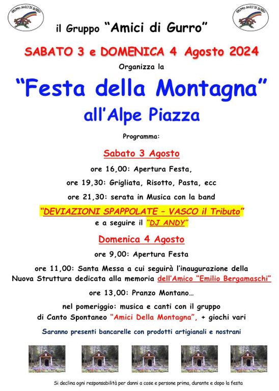 L’intitolazione a Bergamaschi è per domenica 4. “Un caro amico e collaboratore – ricorda il presidente, Jean Bergamaschi – prematuramente scomparso a fine febbraio”. Alle 11 la messa e, al termine, l’inaugurazione in memoria di Bergamaschi. Nel pomeriggio il concerto organizzato dagli “Amici di Gurro” con i Cantori degli amici della montagna.