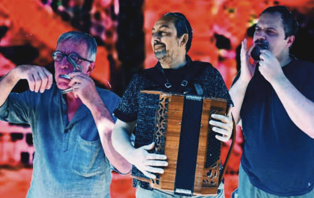 In scena Massimo Losito alla fisarmonica, voce e stomp box, Alessandro Zolt ai flauti, voce e ribeba, Guido Antoniotti alle percussioni, fiati, ribeba, voce e strumenti “riciclati”.