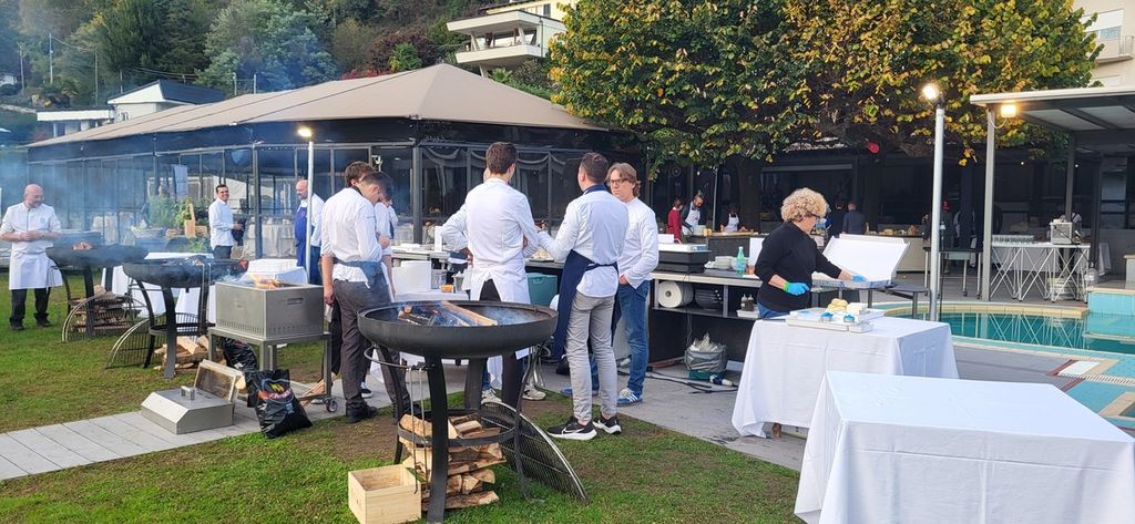 E al Piccolo Lago due serate, la domenica e il lunedì, per continuare a celebrare chef e cibo. La prima, domenica, con una vasta rappresentanza degli chef presenti sull'isola che hanno proposto i loro piatti iconici e lunedì sera il "mercato" dei produttori locali. "Abbiamo invitato i produttori della zona, massimo 50 km da qui, quindi prodotti a chilometro zero. Abbiamo fatto la spesa, buttato sulla griglia, i nostri chef hanno giocato e si sono divertiti con il cibo, gli ospiti assieme a noi". Eventi in cui si è valorizzata la creatività degli chef, tra cui Matteo Sormani e Andrea Lo Cicero, e i produttori, alcuni molto piccoli, che hanno portato le loro eccellenze, dal Bettelmat al bitter al mirtillo, dai salumi ai prodotti della panificazione. Dalla Formazza sino al novarese. Un tripudio di formaggi, salumi, mieli, e poi la polenta, piatto povero quanto ricco di sapore e cultura.