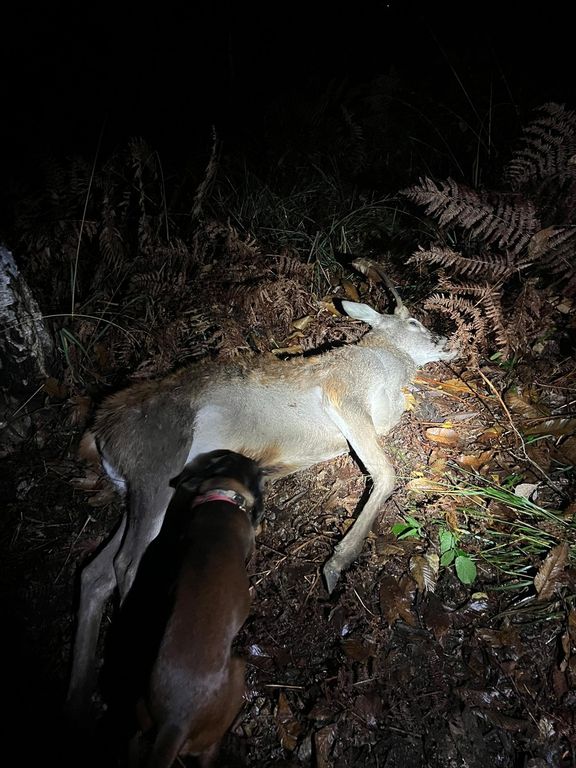 Hanno così battuto la zona degli spari effettuati dal veicolo ed utilizzando il cane da traccia che gli agenti avevano al seguito, Aiko, hanno rinvenuto un primo esemplare di cervo maschio giovane, fusone, e una seconda cerva femmina adulta, quella abbattuta alle 3.30, che era stata opportunamente nascosta ed occultata sotto le felci e ginestre. Determinante al rinvenimenti dei cervi abbattuti il lavoro svolto dal cane in considerazione che le ricerche erano concentrate nel pieno dell'oscurità e per tanto di impossibile individuazione visiva ma l'olfatto del cane ha fatto la differenza.